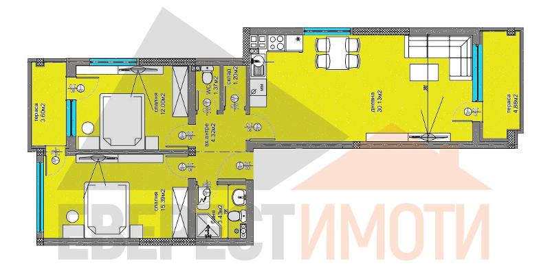 Оферта:2216. Тристаен апартамент в ЛУКСОР 6, кв.Въстанически гр.Пловдив. ПРОМОЦИОНАЛНА ЦЕНА, ДИРЕКТНО ОТ ИНВЕСТИТОР, БЕЗ КОМИСИОН!! ПРЕДСТОЯЩИЯ ЛУКСОР 6 представлява 2 малки сгради с голям озеленен двор/5000кв.м./ обединяващ спокойствие, сигурност, функционалност, лукс и чудесно местоположение. Всичко това на едно място и на супер изгодни цени!!! Предлагаме Ви чудесен ТРИСТАЕН АПАРТАМЕНТ с възможност за закупуване на ПАРКОМЯСТО във вътрешен двор или ГАРАЖ. СГРАДИТЕ са с красива архитектура на прекрасно място, с визия прилягаща за квартала и скатни покриви с керемиди. Апартамента се състои от дневна с трапезария и кухненски бокс, две спални, баня с тоалетна, втора тоалетна, входно антре, склад и две тераси. Строителството е прецизно с много високо качество на изпълнение и материали: керамична тухла, немска 5-камерна дограма от най-висок клас с мултифункционално стъкло, дизайнерско стълбище/виж галерия/ от естествен камък и облицовка на фасадата, 10 см. външна топлоизолация, парапети на стълбището и терасите от ковано желязо, блиндирани входни врати, безшумен асансьор, домофонна система с видеонаблюдение, декоративни елементи по фасадата, LED осветление по общи части и фасада и много други екстри за живущите. Жилищата се издават на шпакловка и замазка с изградена ел. инсталация с контакти и ключове, ВиК на тапа, входна блиндирана врата от най-висок клас. Мястото е тихо и много спокойно, като в близост има зеленчуков пазар, детска градина, училище, болница и автобусни спирки. ЧУДЕСЕН за инвестиция и живене поради близостта си до големи университети. Разсрочено плащане в рамките на строителството. Агенция ЕВЕРЕСТ ИМОТИ съдейства за закупуването чрез банков кредит от водещи банки на преференциални условия за клиентите си!!