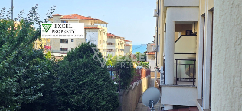 Апартаментът, който предлагаме за продажба е разположен на първи етаж над партерния и е с обща площ от 66 кв.м.. Състои се от антре, просторна всекидневна с кухненски бокс, спалня, баня с тоалетна и тераса. Терасата е обърната на изток и е много приятна следобед, а има и частична гледка към морето. Жилището е изцяло обзаведено и всичко е в отлично състояние.
