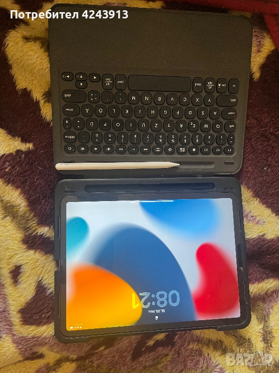 Капацитет на батерията 87,5%Устройството е много добре запазено, в комплект се дава Кейс с клавиатура и епъл писалка.