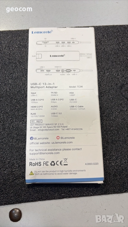 Lemorele TC96 13in1 USB Type-C HUB (Нов.G-Lan.D-SUB,USB,SD/MMC,Type-C)