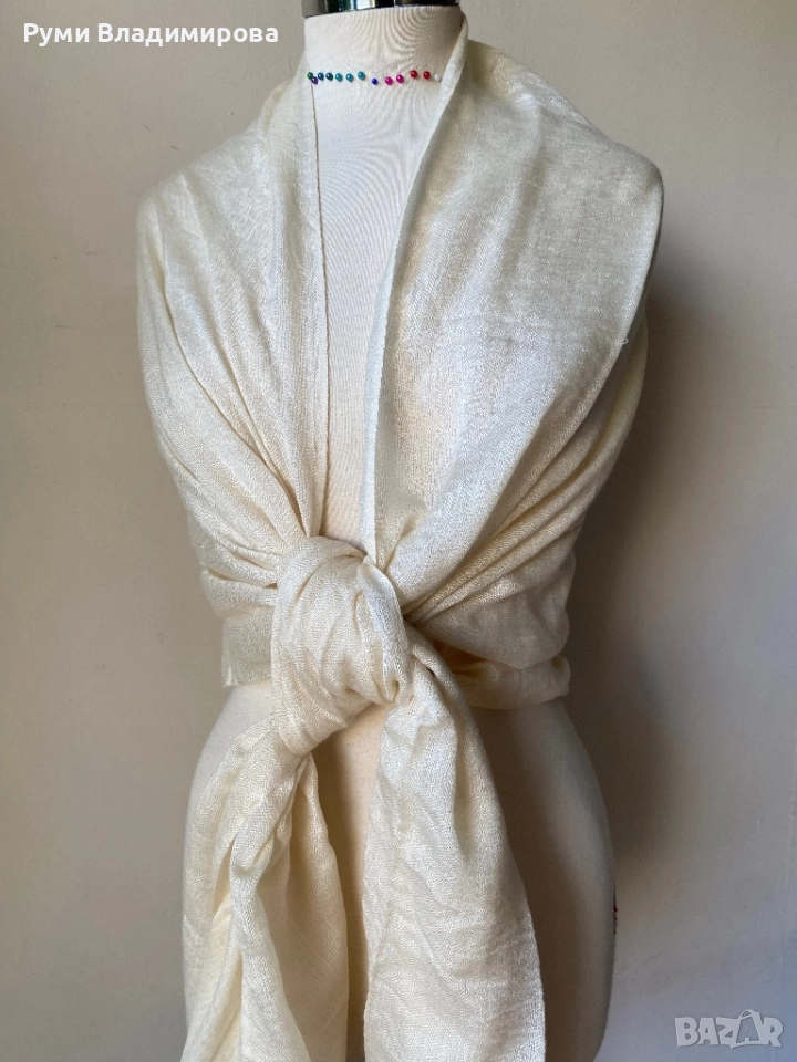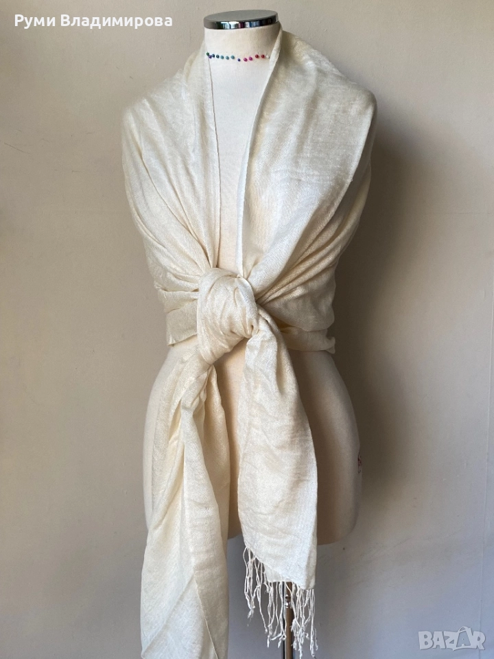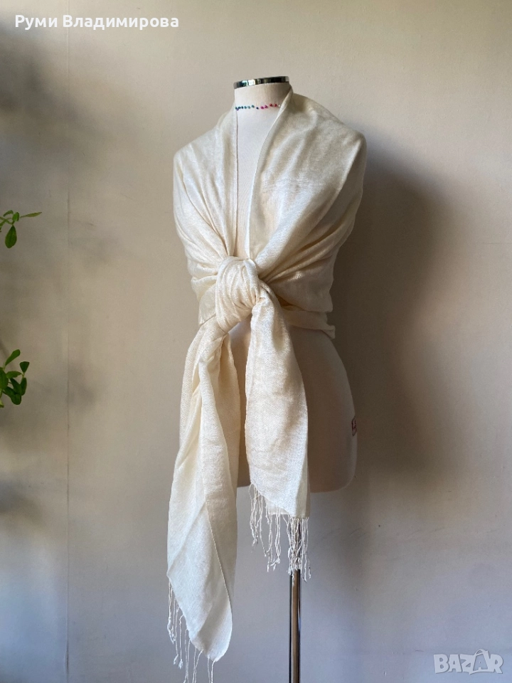 Шал в цвят екрю от пашмина → Обява 52532161