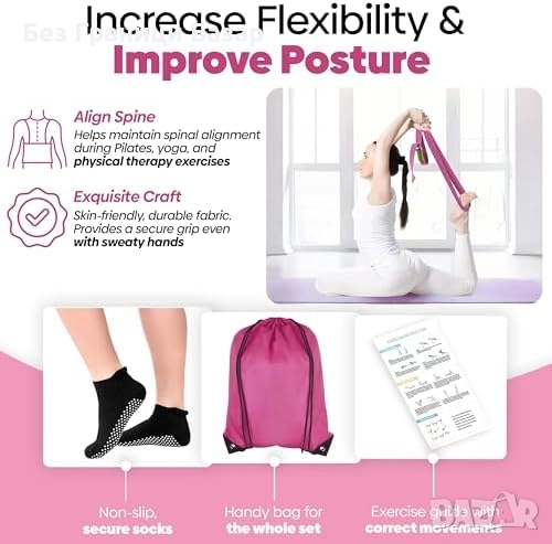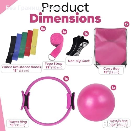 Нов Пилатес ринг сет 9 в 1 с топка, йога колан и чорапи за тренировка