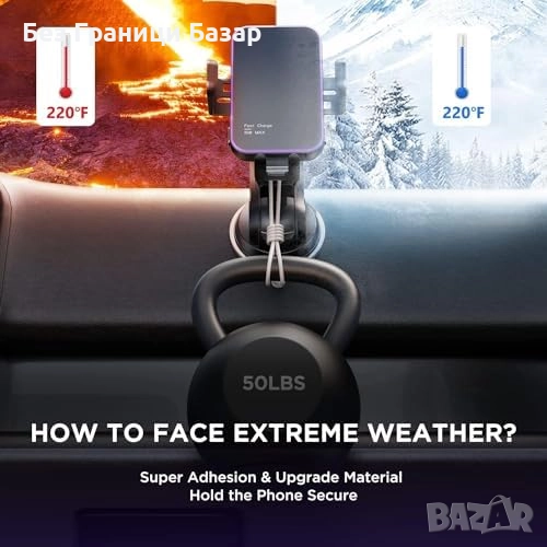 Силна вакуумна основа с капацитет до 50 lb – стабилност дори при резки завои