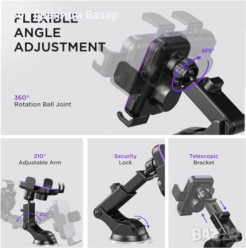 Автоматично захващане – телефонът се фиксира и освобождава с едно докосване