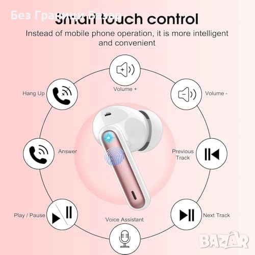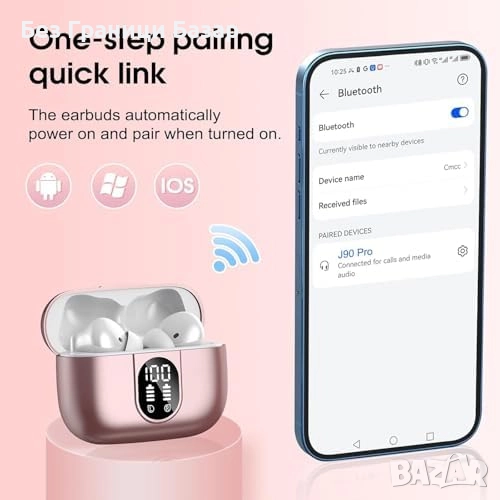 Нови Розови Bluetooth слушалки с микрофон и кутия за зареждане 40 часа