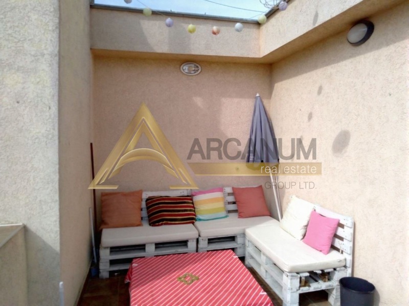 Обзаведен мезонет на метри от пешеходната зона, на гърба на Starbucks. На първо ниво се намира всекидневна с кухненски бокс и баня с тоалетна. На второ ниво са разположени две спални, баня с тоалетна и голяма слънчева тераса. Апартаментът е оборудван с всички необходими електроуреди, отоплението е с климатици.