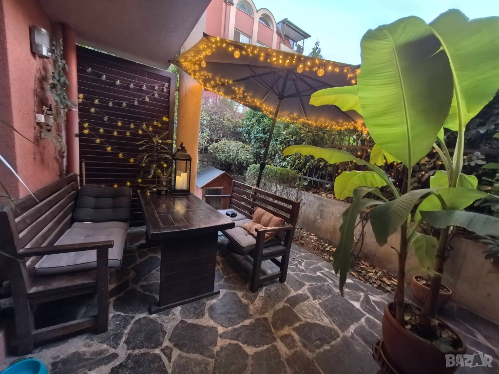 Истинска перла на имота е дворът от 68 кв.м., оформен с беседка и зимна градина. Към него води и самостоятелен вход от улицата, осигуряващ директен достъп до индивидуалното паркомясто рядко удобство за района.