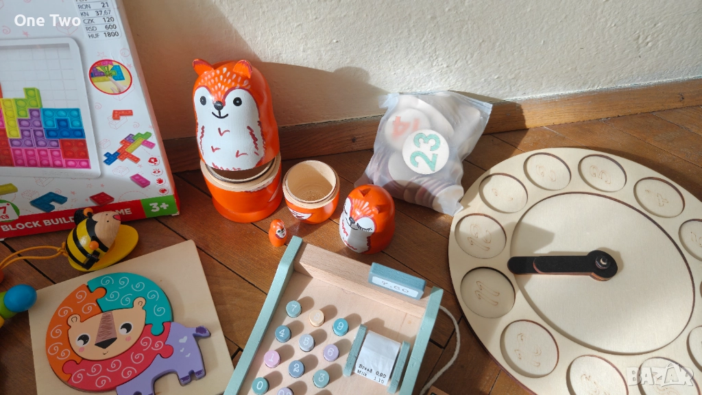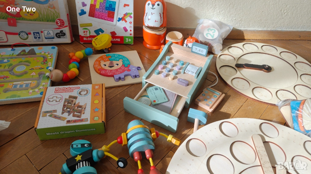 Продавам страхотна колекция от висококачествени дървени играчки, подходящи за деца на възраст между 2 и 4 години. Играчките са ползвани, но са изключително добре запазени, здрави и чисти.