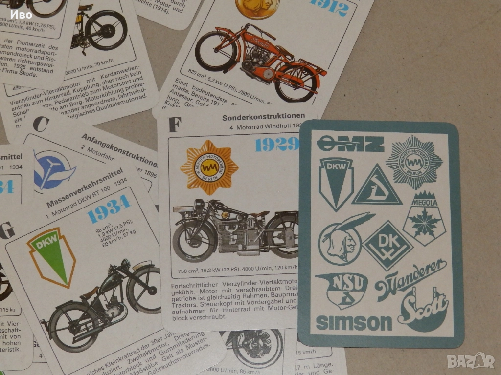 Карти с мотоциклети - история и развитие на мотоциклетите. С изображения на Simson, NSU, MZ, BMW, DKW, Indian и др.