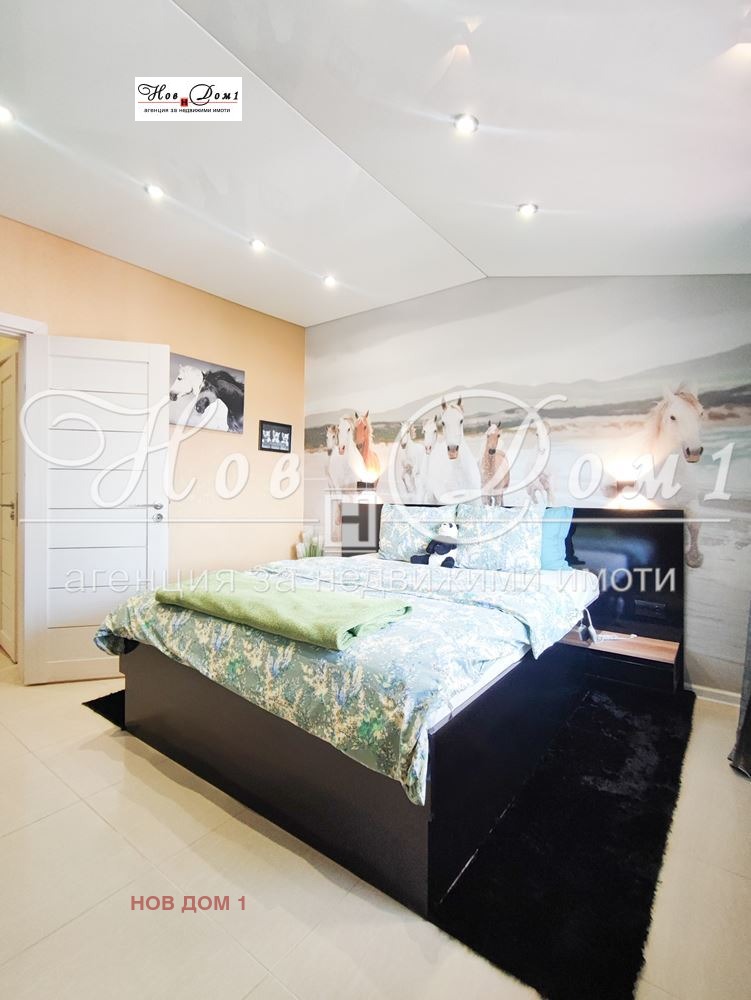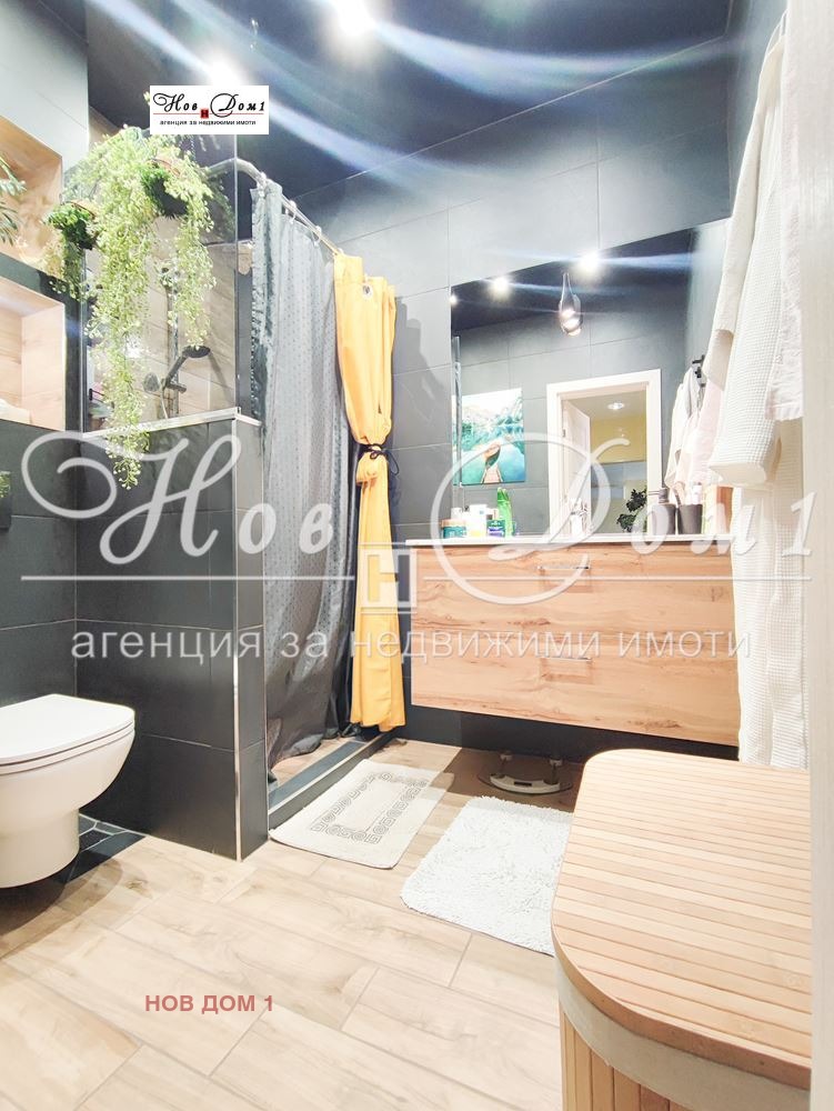 Всяко помещение е с естествена светлина, като дневната е с френски прозорци, което придава усещане за простор и комфорт. Финишите и мебелите са подбирани в естествени тонове, с акцент върху текстура и материал.