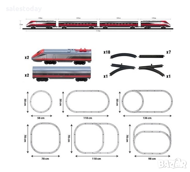 вагона. Релсите образуват железопътна линия, овална 118х58см и