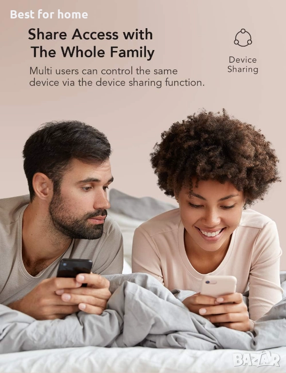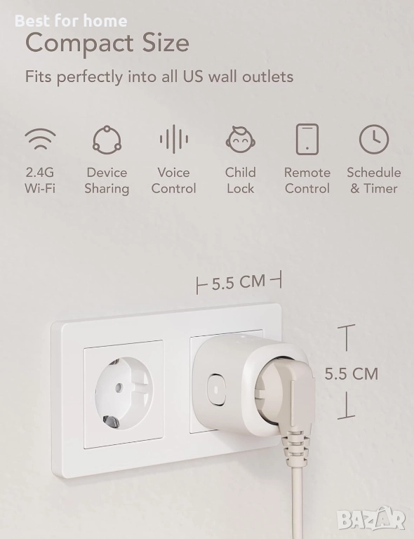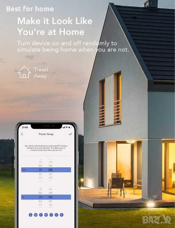 SMARTLIFE&TUYA - Можете дистанционно да управлявате устройства по всяко време и навсякъде, чрез телефона си, след като изтеглите безплатното приложение "Smart Life & Tuya". Не е нужно да се местите, за да включвате и изключвате устройства, дори когато са у дома.