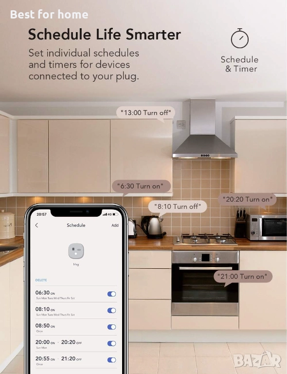 Правилна настройка на рутината – С приложението Smart Life можете да контролирате домакинските си уреди безпроблемно, като задавате автоматични часове и планове за деня, така че вашите устройства (като лампи, отопление и кафемашина и др.) да могат да се включват и изключват независимо, внасяйки комфорт и ефективност в живота ви.