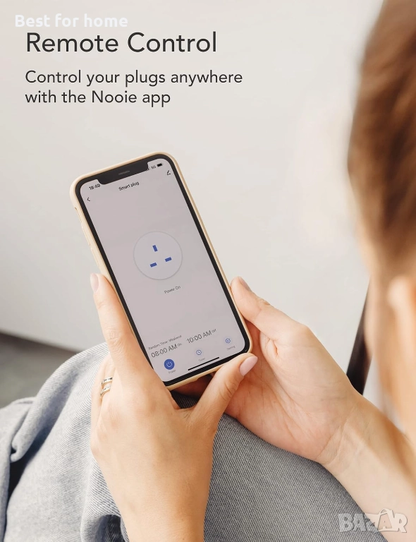 Дистанционно управление - Можете да управлявате устройства дистанционно, след като изтеглите безплатното приложение "nooie" по всяко време и навсякъде, чрез телефона си. Не е нужно да се местите, за да включвате и изключвате устройства, дори когато са у дома.