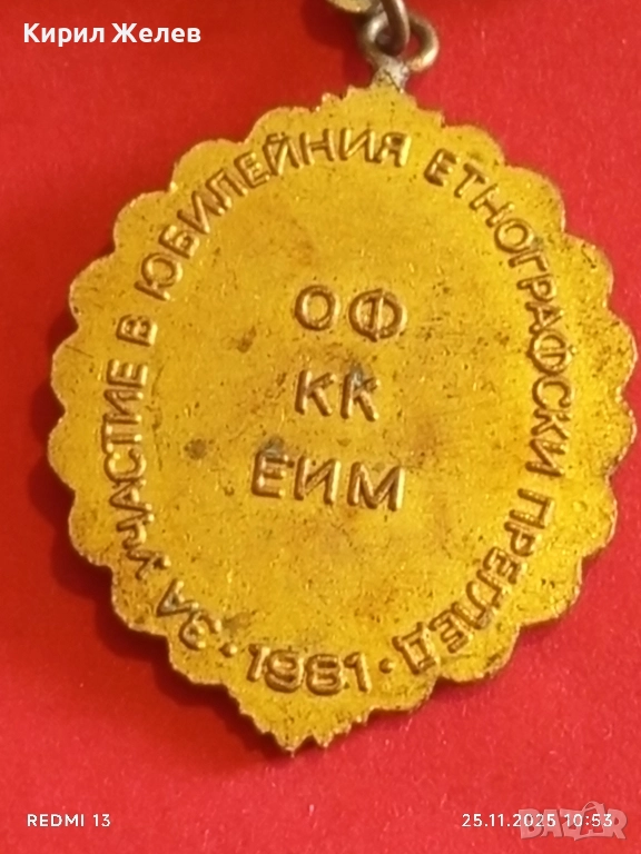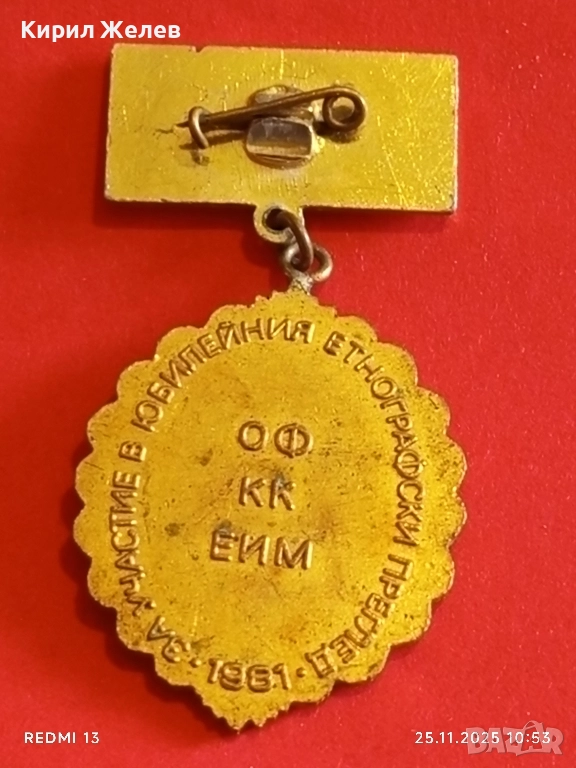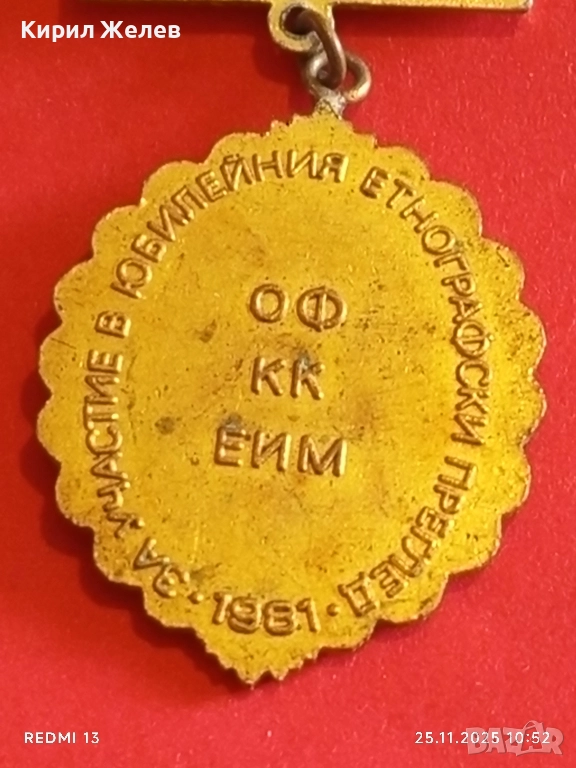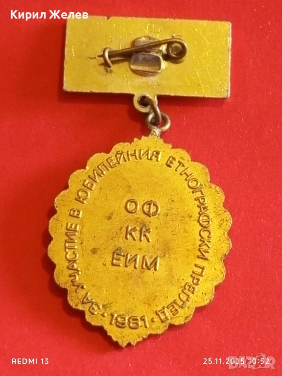 РЯДКА ЗНАЧКА 1300г. България За участие в юбилейно етнонографско събитие 51403