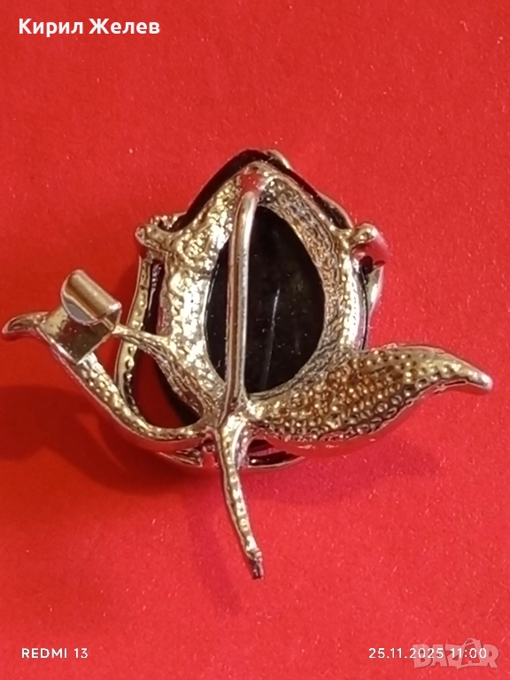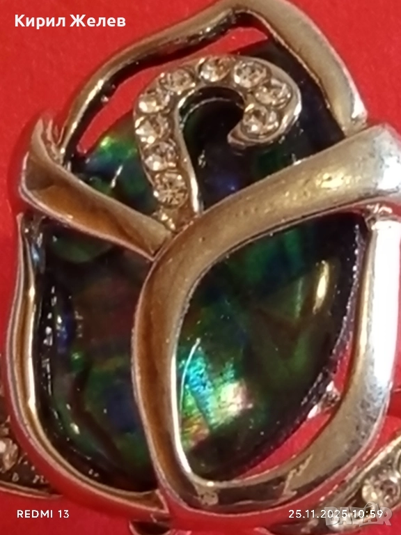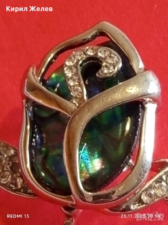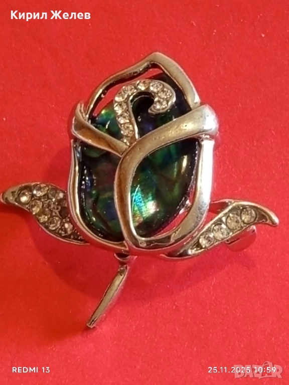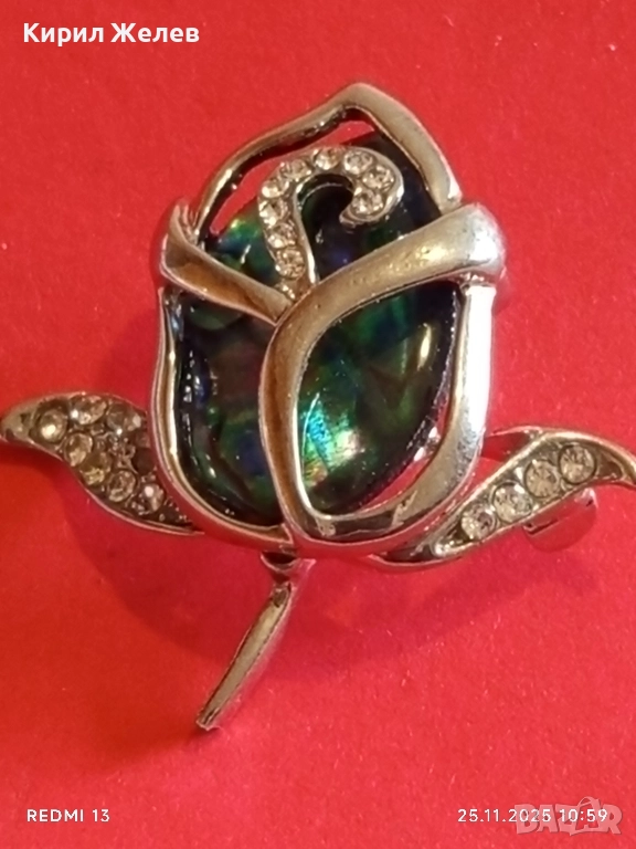 БРОШКА ЗЕЛЕНО ЦВЕТЕ ИНКРУСТАЦИЯ от СЕДЕФ и КРИСТАЛИ ЛУКС ПОДНЕСЕН АРИСТОКРАТИЧНО 52225