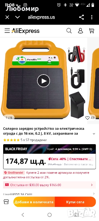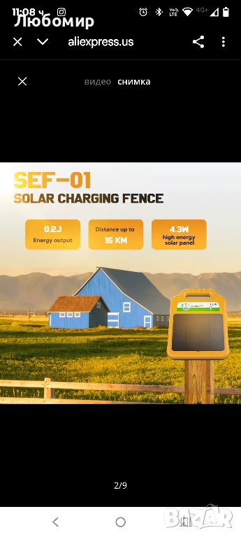 Соларно зарядно устройство за електрическа ограда с до 16 км, 0.2 J, 8 kV, захранване за