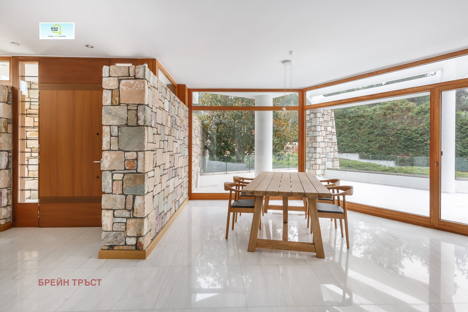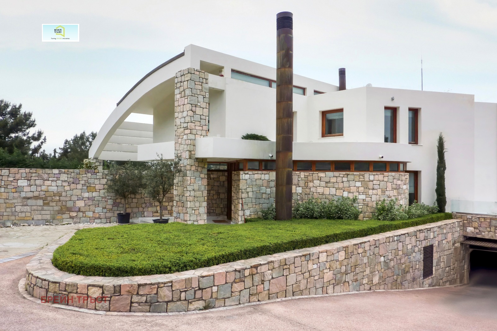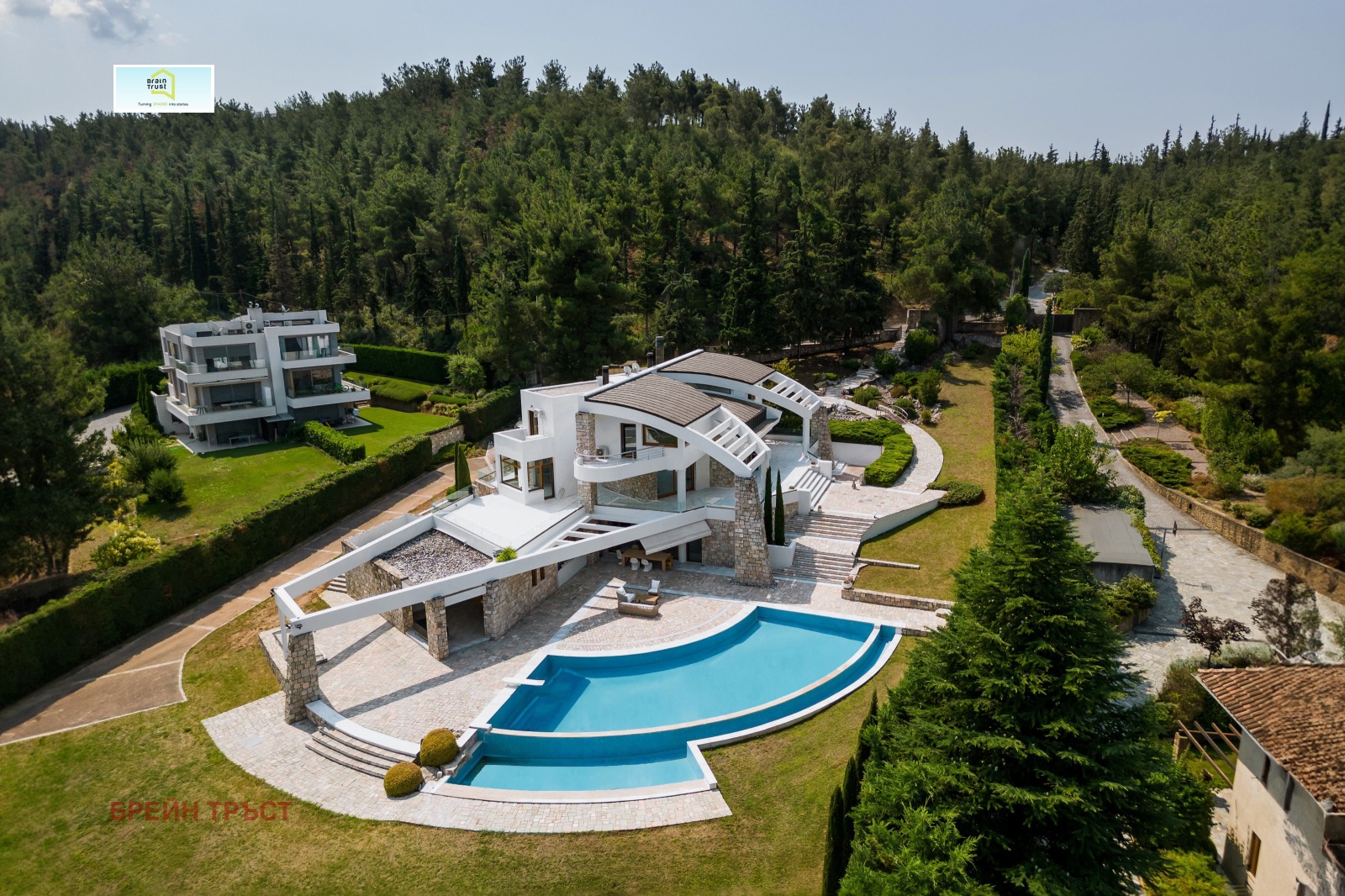 Brain Trust предлага просторна и модерна самостоятелна триетажна къща, разположена в тиха и престижна жилищна зона в морския град Солун. Имотът съчетава комфорт, функционалност и стил. Перфектен избор за хора, търсещи уют, лукс и спокойствие. Вилата разполага с голям озеленен двор, стилен басейн, просторна дневна зона с панорамни прозорци, напълно оборудвана кухня, 6 светли спални, 5 бани, 2 wc.