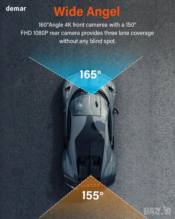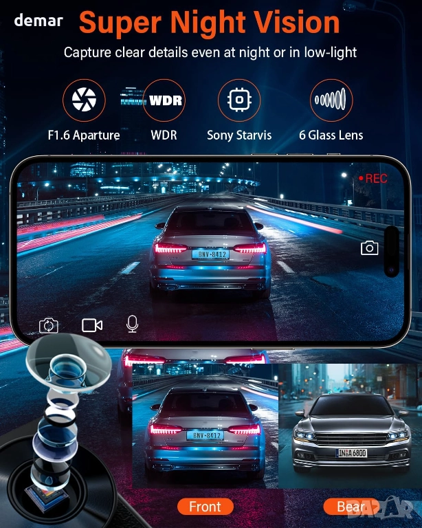 4K видеорегистратор за автомобили отпред и отзад, WiFi, GPS, 64GB SD