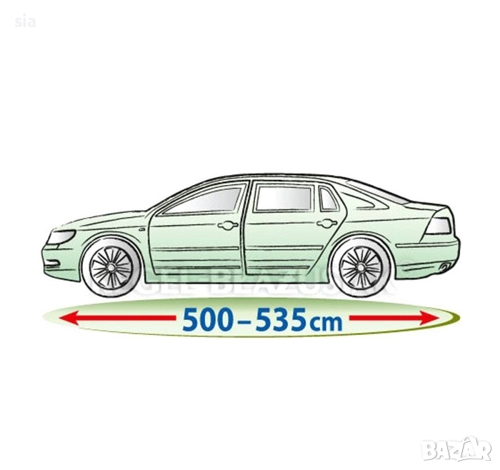 - Сравнете формата на вашия автомобил със снимката на продукта (размерите са налични в поле "техническа информация"). Измерете колата си, като обърнете специално внимание на нейната дължина. Крайният размер е обиколката на автомобила, чрез този размер, ще имате по-точна представа кое покривало ще пасне най-добре.