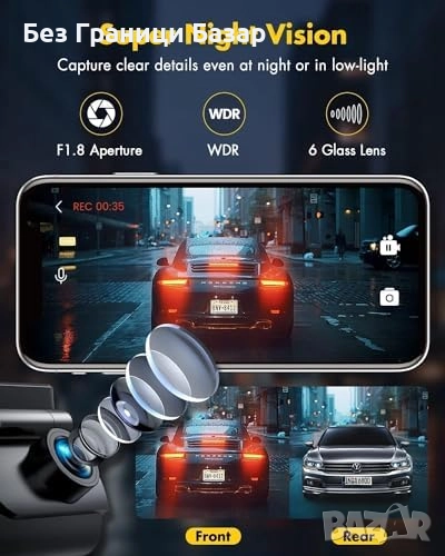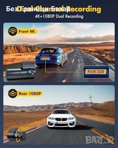 4K предна и 1080P задна камера за кристално ясни записи от всяка посока
