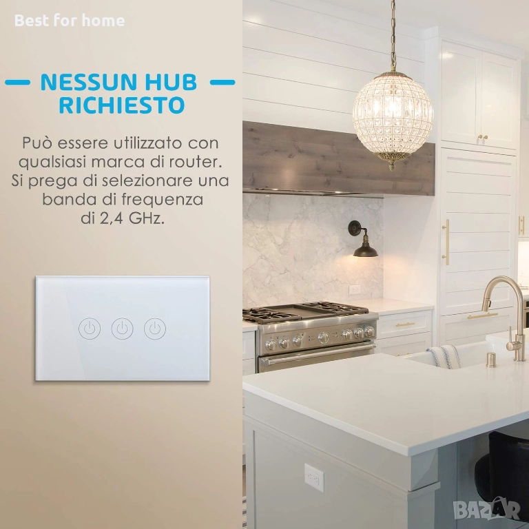 Meross италиански превключвател с Alexa, автоматизация за интелигентен дом, интелигентни превключватели с Google Home, италиански спецификации, 1/2/3-полюсен сензорен панел, таймер, приложение meross.