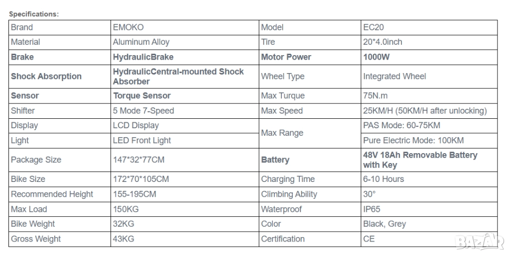 • МАКСИМАЛЕН ПРОБЕГ до 70 км