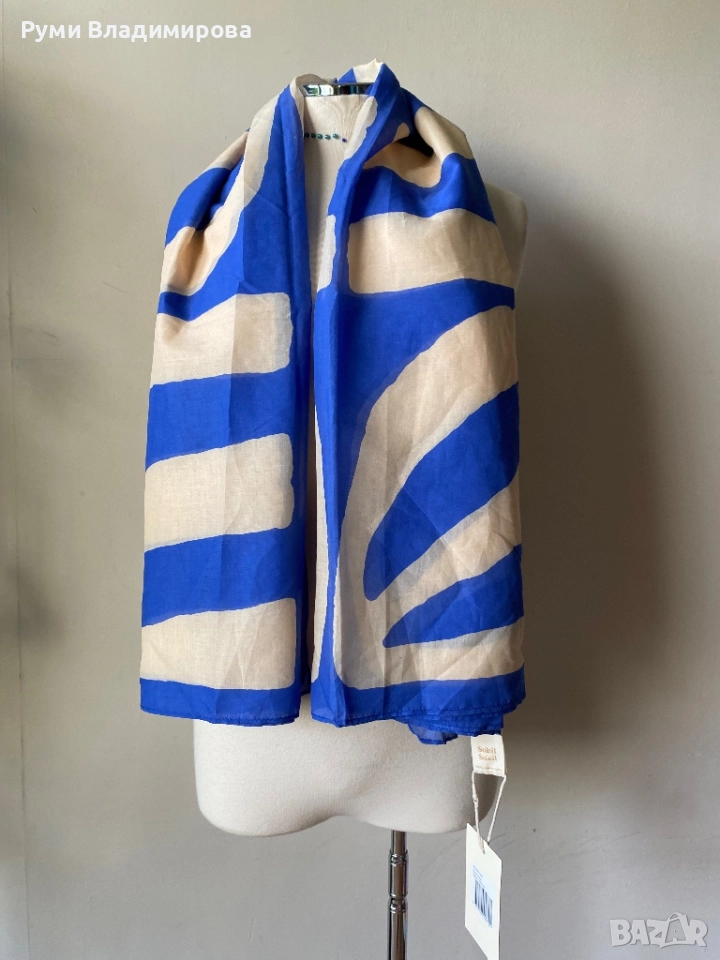 Бял/ син шал Soleil Soleil от 100 % органик памук, с етикет