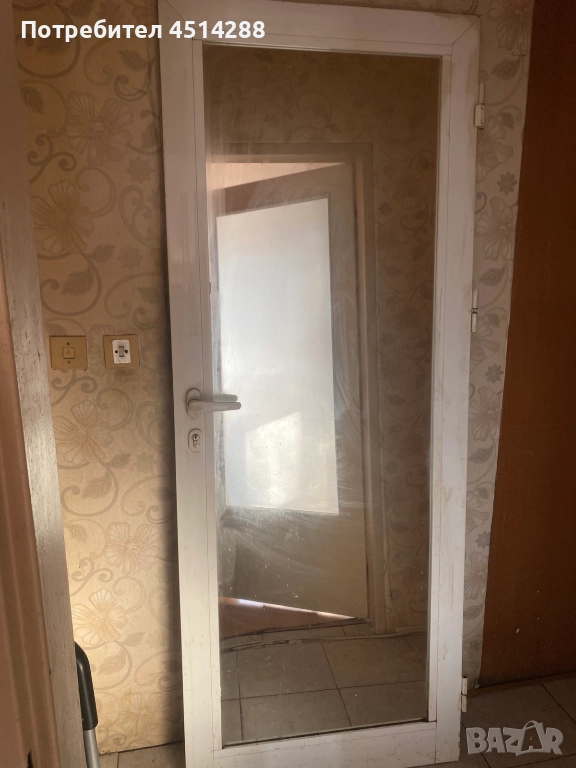 Продавам ПВЦ врата с огледало от едната страна, с работеща брава + ключове и панти.