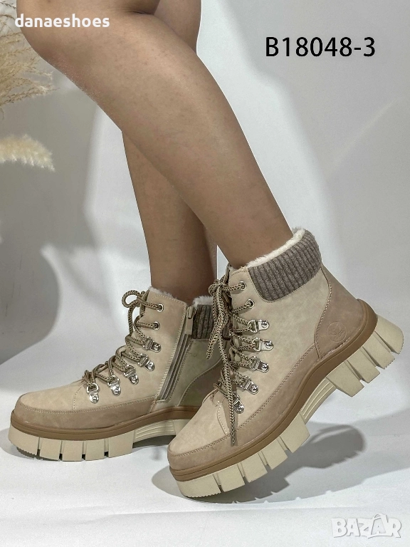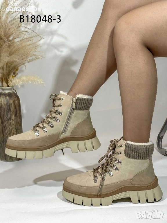 Дамски спортни боти с цип и връзки, за регулиране на ширината. Подметка с грайфер. Топъл хастар. Модела е много удобен и е подходящ за студените зимни дни. Номерация 36-41. Налични и в кафяво.