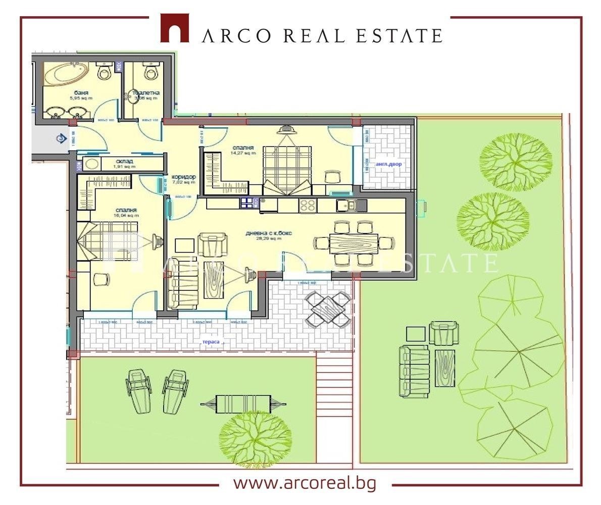 ARCO REAL ESTATE ПРЕДЛАГА ЗА ПРОДАЖБА 3-СТАЕН АПАРТАМЕНТ, в новострояща се малка бутикова сграда в кв.Малинова долина до до Симеоновско шосе.Има безплатен английски двор от 100кв.м към апартамента.