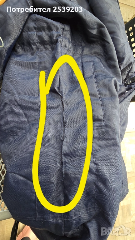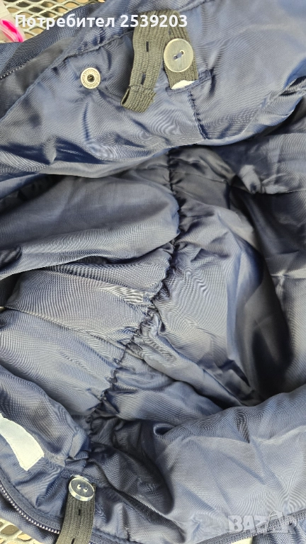 Има забележка на единия крачол, която е коригирана, но все пак е шито. Беше закачен на една ограда и се разпори по шевът, зашито е, не пречи да се ползва и така, всичко останало по него е перфектно