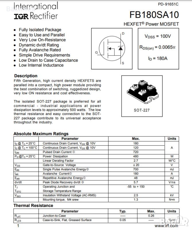 FB180SA10 - Мощен MOSFET транзистор, 180A/100V, снимка 1 - Друга електроника - 52534676 FB180SA10 - Мощен MOSFET транзистор, 180A/100V, снимка 2 - Друга електроника - 52534676 FB180SA10 - Мощен MOSFET транзистор, 180A/100V, снимка 3 - Друга електроника - 52534676 1/3