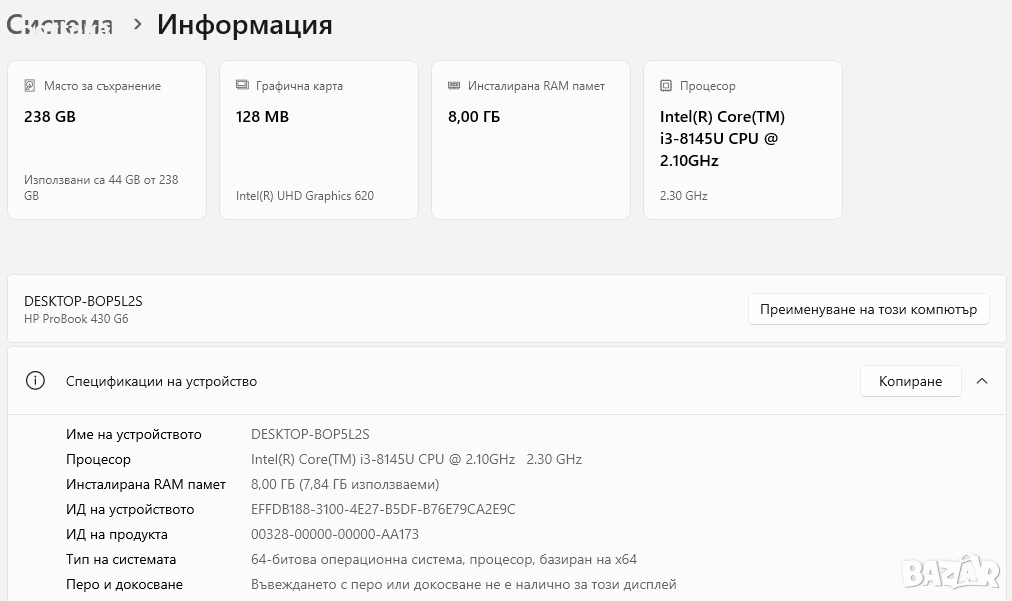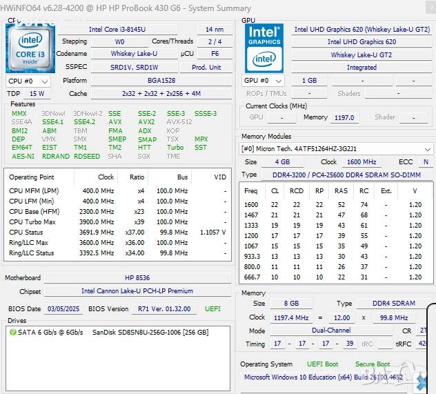 Лаптоп hp ProBook 430 G6 Intel Core i3-8145U / 8GB RAM / 256GB SSD