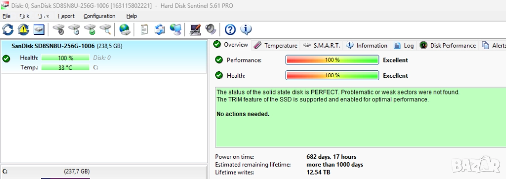 Лаптопът работи перфектно и е в много добро състояние. Почистен, профилактиран и готов за употреба. В комплект със зарядно. В добро външно състояние (Разгледайте снимките). Липсват малки парченца от безела (пластмасата около дисплея -- вижте снимките). Цената е съобразена с тази забележка.