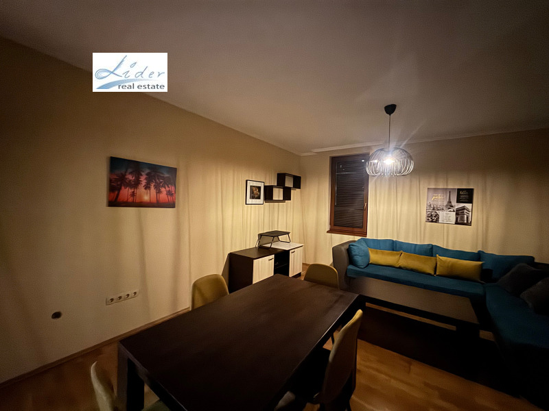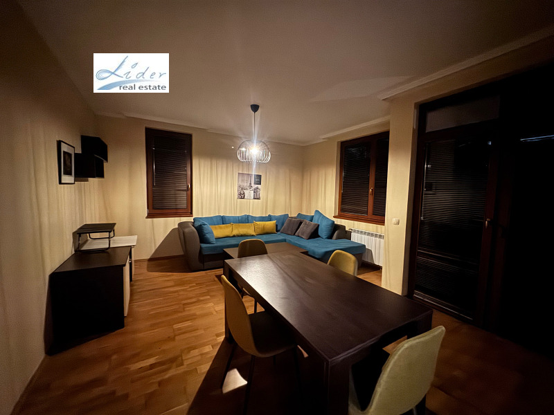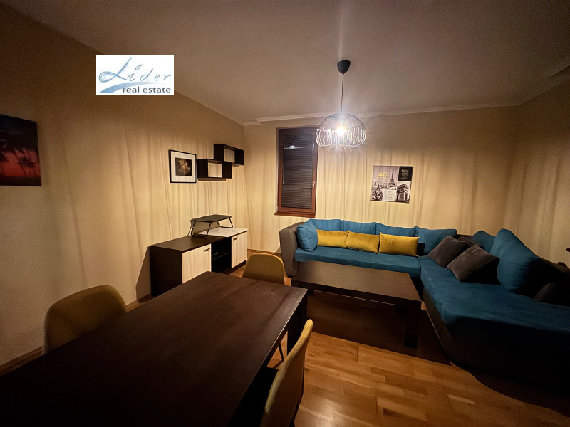 Луксозен напълно обзаведен тристаен апартамент, до Фантастико в затворен комплекс с контрол на достъпа-жива охрана, В близост до магазини за хранителни стоки, спирки на градски транспорт. Представлява като разпределение: хол, 2 стаи, балкони 2 бр., баня,отделно WC. Голям хол на ламинат, стени латекс; обзавеждане - диван, два фотьойла, ниска холна масичка, секция, климатик, тераса; спалня отделна на , ламинат, стени латекс, обзаведена с голямо легло тип спалня, две нощни шкафчета, голям гардероб; втора спалня на ламинат, стени латекс, обзаведена с голямо легло персон и половина; кухненски бокс с трапезария към хола, голям балкон тип двор, на теракот, има вградена кухня с шкафове долни и горни, печка, хладилник, пералня, маса с четири стола; отделно баня с тоалетна и тоалетна, на фаянс и теракот; блиндирана входна врата, под теракот, стени - латекс, потманто, шкаф за обувки.такса поддръжка 200е за сметка на наемател. За ч.л.За контакт: 0889312914