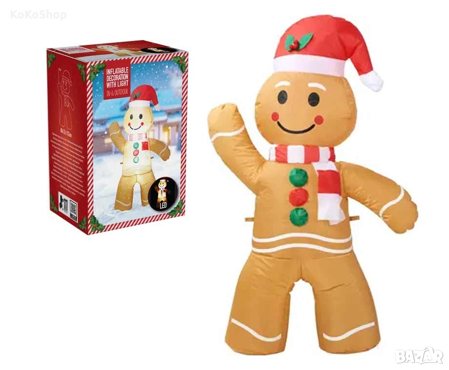 надуваемо човече, Gingerbread, меден човек, коледна украса, надуваема фигурка, декоративна фигурка, коледна декорация, празнична украса, 120 см надуваем, голяма коледна фигурка, Christmas decoration, inflatable gingerbread, надуваем меден човек, коледен орнамент, надуваемо деко, украса за парти, украса за витрина, коледен декор