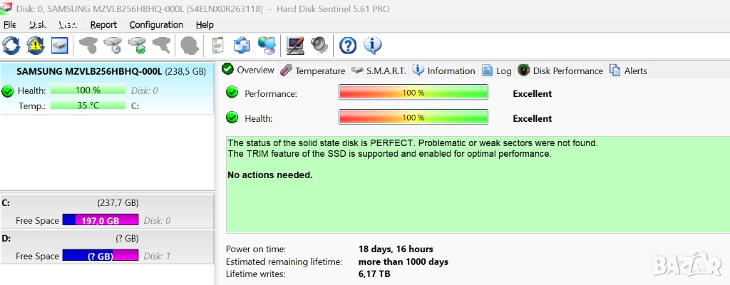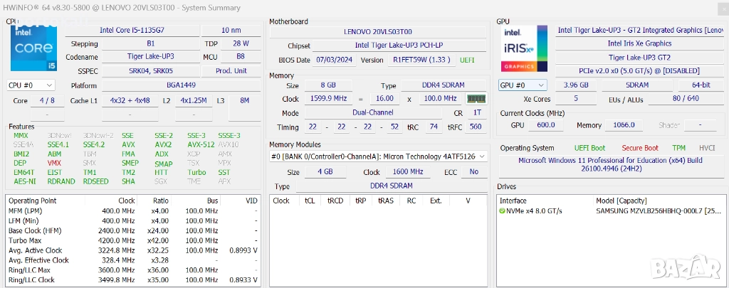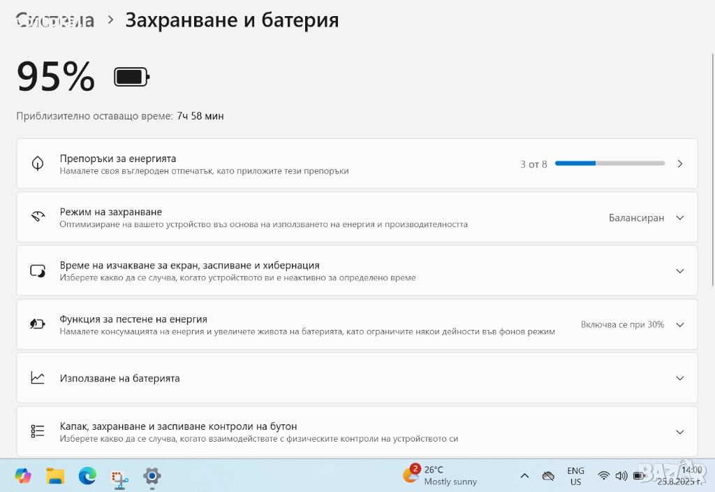Батерия: Налична и в добро състояние, Windows отчита над 8 часа!