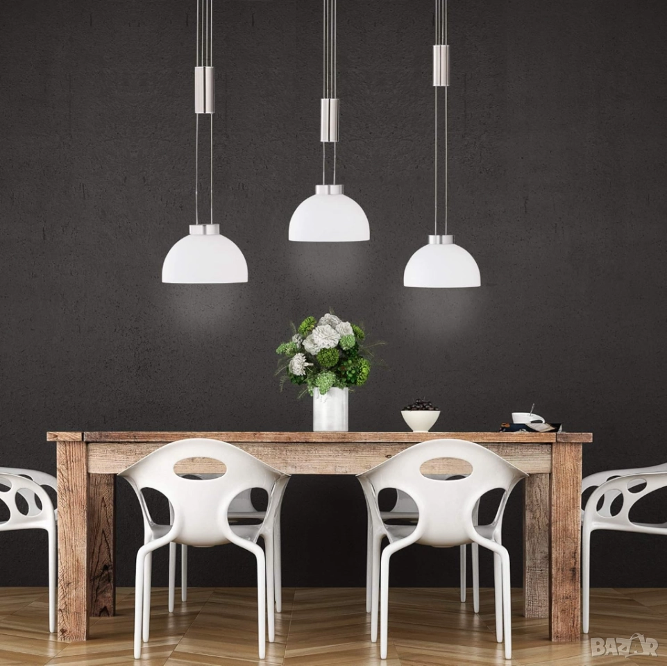 Дизайн: никелов цвят, метален корпус, опалово/матово стъкло – стил “модерен” и “лукс”.