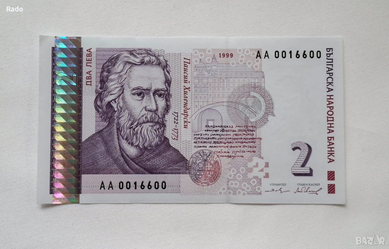 Непрегъвана Банкнота (UNC) 2лв 1999г с хубав номер (АА0016600) → Обява 52535630