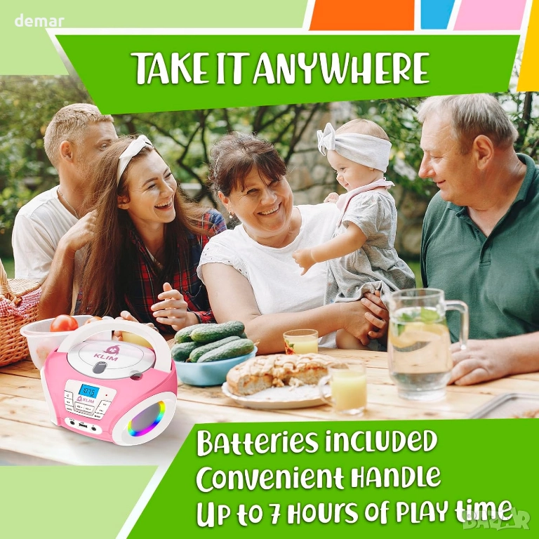KLIM Candy Boombox CD плейър за деца с високоговорители, FM радио, розов