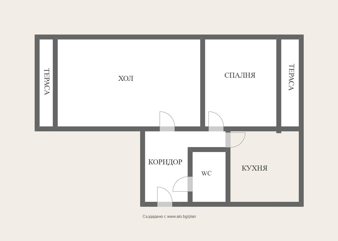 Имотът е на непоследен жилищен етаж и разполага с площ 63 кв.м, разгърната в следното разпределение: коридор, спалня, кухня, хол, баня с тоалетна и тераса.