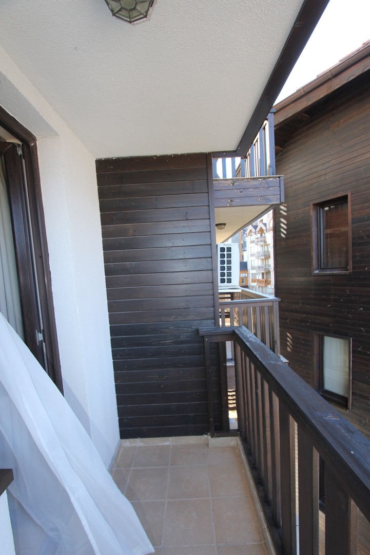 Кухненския кът, е оборудван с горни, долни шкафове, хладилник и микровълнова фурна. Всекидневната има два балкона- единият с южно, а другият със западно изложение и хубава гледка към планината.