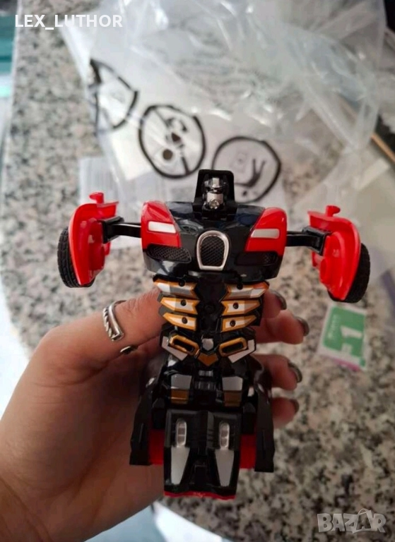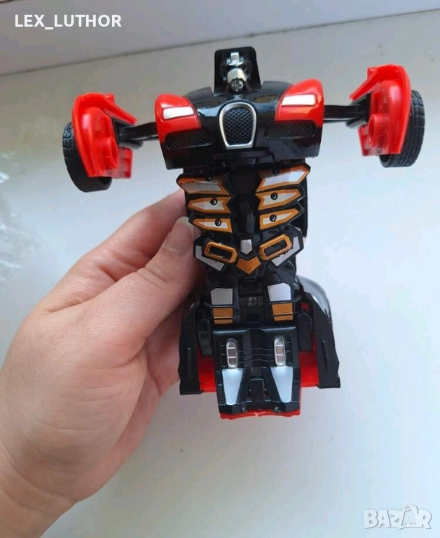 🌟 Основни Предимства, Които Децата Обожават: Трансформация 2 в 1: От луксозна спортна кола Bugatti (в червено и черно) в впечатляващ боен робот и обратно. Двойно повече забавление в една играчка! Инерционно Задвижване (Без Батерии!): Просто я бутни! Колата се движи напред с инерция – край на търсенето на батерии. "Bump and Go" Екшън: Когато удари препятствие, играчката автоматично сменя посоката и се завърта на 360° Неспиращо и непредсказуемо забавление. Здрава и Издръжлива: Изработена от висококачествена пластмаса, издържа на удари, падания и часове груба игра.