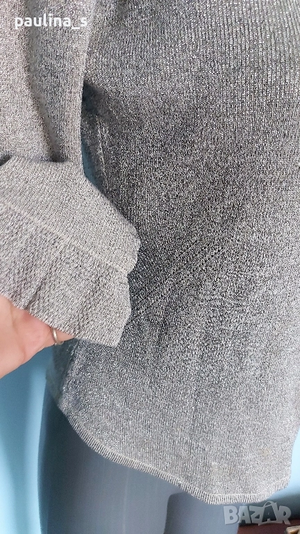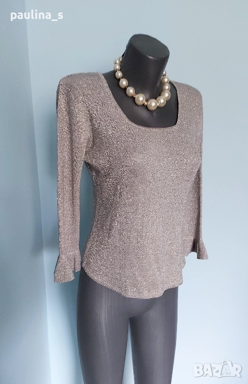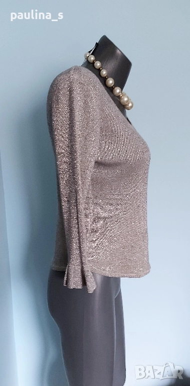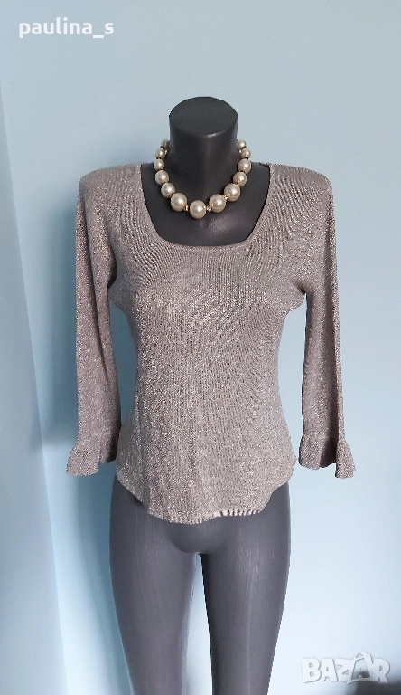 1️⃣. ВИНТИДЖ! L / 2XL - Уникална еластична сребърна блузка на Фенди. Цената е крайна, без пазарлъци 39,99лв / 20 евро. Купувана е в Цюрих преди 19г. Деколтето е обло и дълбоко, ръкавите са 7/8, като завършват с плетен дантелен волан. Долу е заоблена, за да се носи върху долната част на тоалета. Обличана и купена за повод. Поради голямата еластичност, покрива няколко размера. Материята е коприна, ликра и нишка ламе. Отрязан етикет(много боде), съобразена цена!
