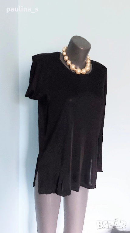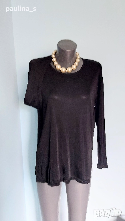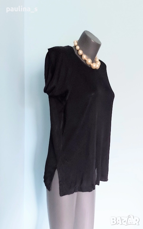 2️⃣. ВИНТИДЖ! Дизайнерска туника / блуза от ацетатна коприна с О-образно деколте и падащи рамене, на Фенди, с отрязани етикети, съобразена цена 29,99лв / 15 евро. Материята е трико от ацетатна коприна, доста еластична и покрива няколко размера. Класика в жанра със сатениращ / кожен ефект. Без дефекти, лична колекция.