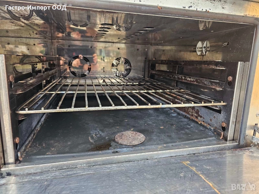 Размери на фурната 53,5x65x32см. Капацитет на фурната GN 2/1, водачи за поставяне на тавата на три нива. Регулиране на температурата от 80°С до 300°С.