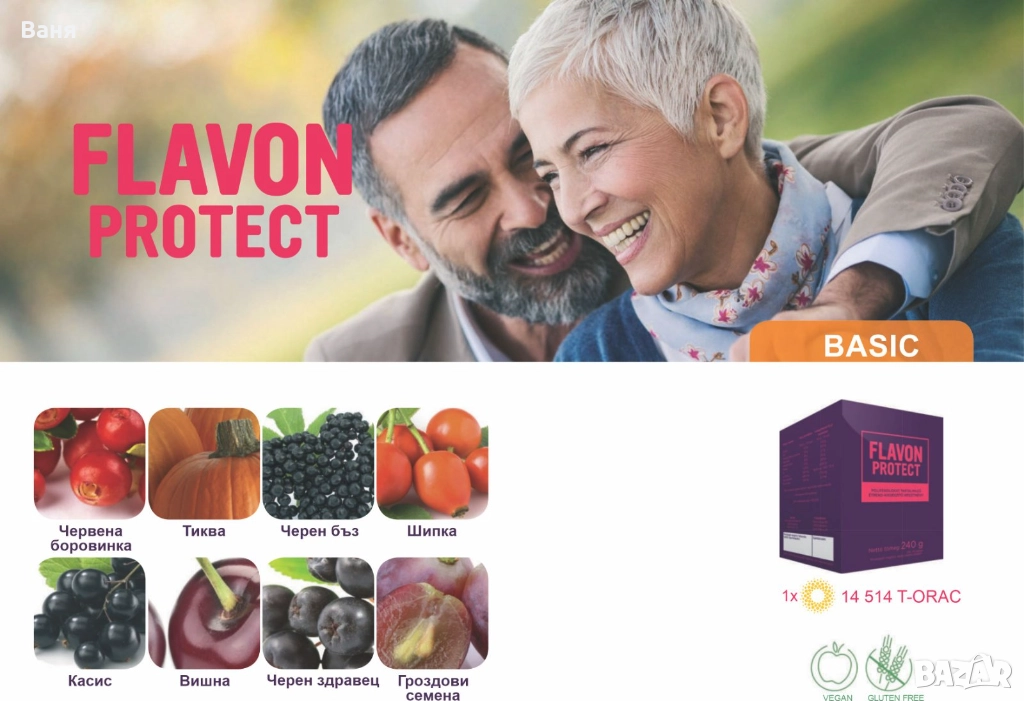 Оригинална хранителна добавка Flavon Protect – иновативен гел с висока концентрация на плодови екстракти, създаден за подкрепа на сърдечно-съдовата система, зрението и цялостната защита на организма.