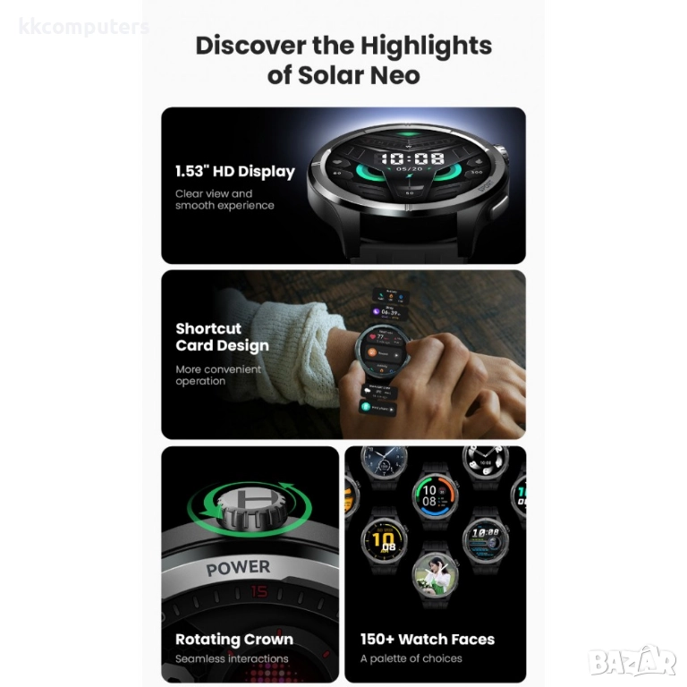HAYLOU Solar Neo LS21 е идеалният избор за всеки, който търси надежден, стилен и функционален смарт часовник на достъпна цена. Изберете своя цвят днес! ( при поръчка, желания цвят посочете в опционалното меню )