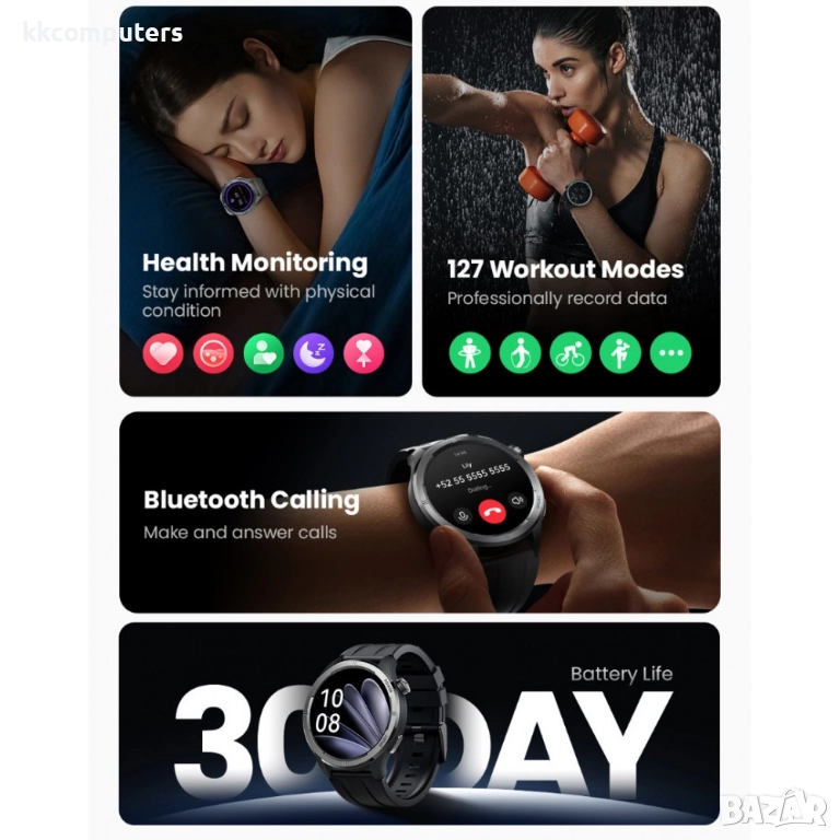 Не пропускайте важни обаждания. С вградената функция за Bluetooth повиквания, можете да говорите директно през часовника, когато телефонът Ви е наблизо.